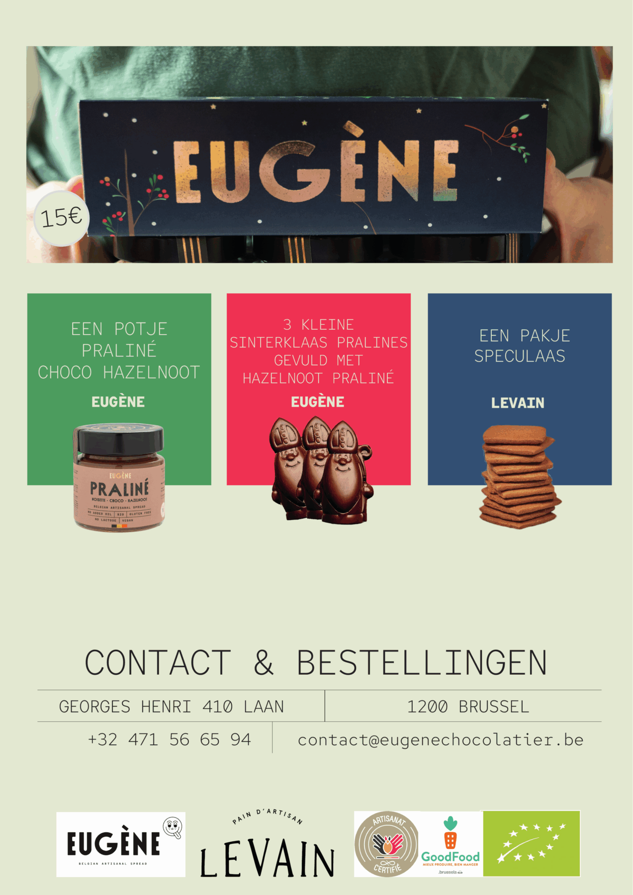 Sinterklaaspakket 2025 Inhoud sinterklaaspakket (zie foto hieronder) : Eén potje van onze smaak : Choco Hazelnoot Praliné (120g) Eén zakje Levain Speculaasjes (100g) 3 kleine Sinterklaasfiguurtjes (gevuld met […] Meer informatie